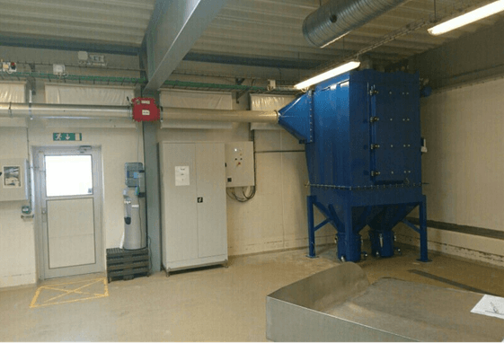 Anläggningens filter ställs in i produktionen för att minimera risken för att mjöldammet suger upp fukt och därmed bildar klibbiga dammkakor på filterinsatserna, som är svåra att rengöra.