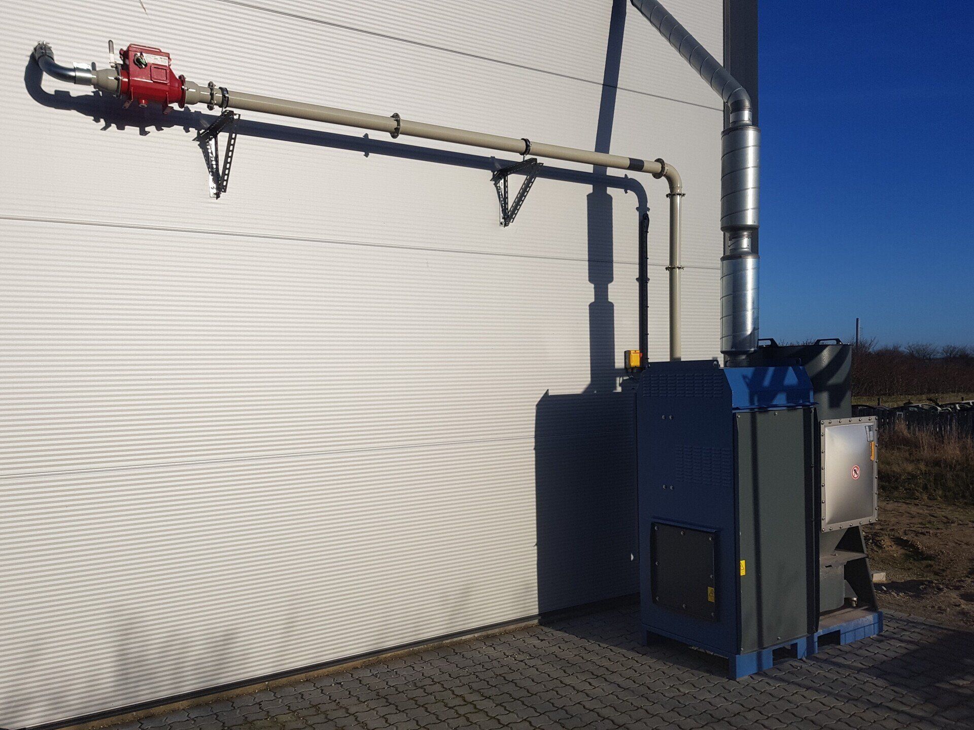 Anläggningen levereras i enlighet med ATEX för att skydda personalen och anläggningen mot en eventuell explosion. Detta inkluderar explosionsplattor i filter och klaff etc.