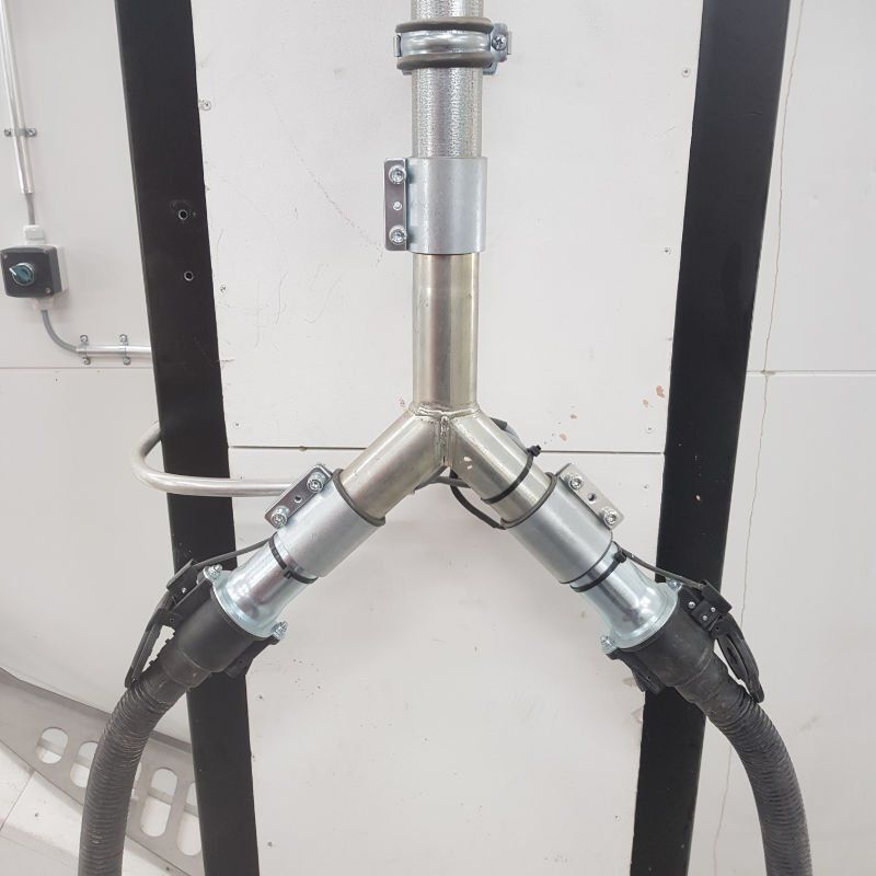 Högvakuumsystemet säkerställer att damm avlägsnas effektivt genom åtta meter långa slangar som är anslutna till slipmaskinerna. Systemet kan också användas för allmän rengöring av rummet. Systemet är byggt med klaffventiler med mikrobrytare, så start/stopp av systemet sker automatiskt genom anslutning av slipmaskin.