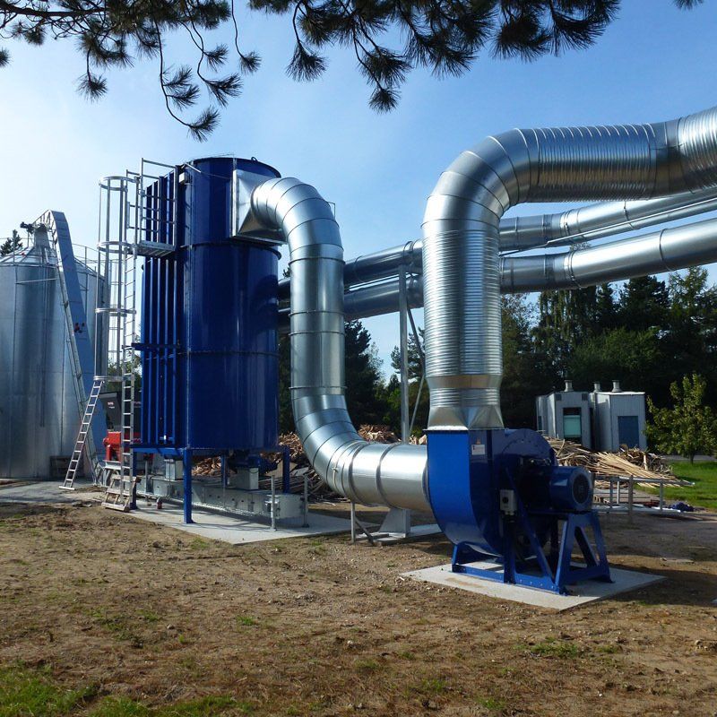 Kedjetransportörer transporterar spån från filter till silo och från silo till förbränningsanläggning. Anläggningen levereras som ett komplett paket, inklusive spånsug, förbränningsanläggning, el, rörledningar och kontroller. Automatiska spjäll i kombination med frekvensstyrd fläkt garanterar energieffektiv drift.