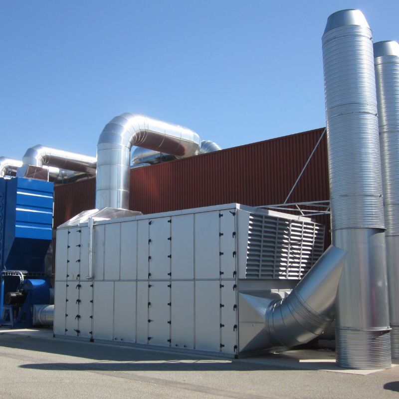 En anläggning för robotsvetsning med en kapacitet på 60 000 m3/h och en anläggning för manuell svetsning med en kapacitet på 40 000 m3/h har installerats. För båda systemen har ett patronfilter installerats som uppfyller kraven för utsläpp och som effektivt renar filterelementen med hjälp av differentiellt styrd tryckluftsrening. Utsugspunkterna för svetsrobotarna och varje manuell svetsstation är utrustade med automatiska spjäll, som öppnas automatiskt när maskinen eller svetsapparaten aktiveras. Avgasfläkten för varje anläggning drivs av en frekvensomvandlare, vilket innebär att luftvolymen automatiskt anpassas till det aktuella behovet.