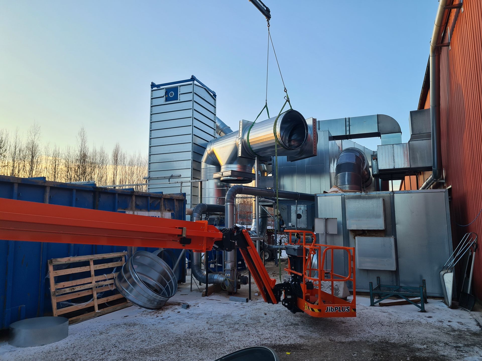 Vi installerade ett nytt superjetfilter bredvid det gamla och kopplade ihop båda filtren via ett gemensamt transportsystem. En ny transportfläkt sattes upp för att öka luftflödet och minska energiförbrukningen.