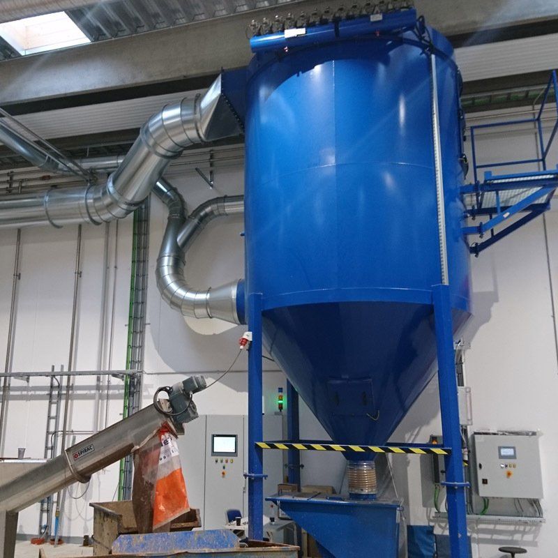 För att undvika alltför stora mängder fukt i filtret är anläggningen utrustad med komponenter som avskiljer en del av vattnet innan dammet hamnar i filterpåsarna. Filterpåsarna är tillverkade av ett material som gör att det fuktiga dammet kan renas från påsarna utan komplikationer.
