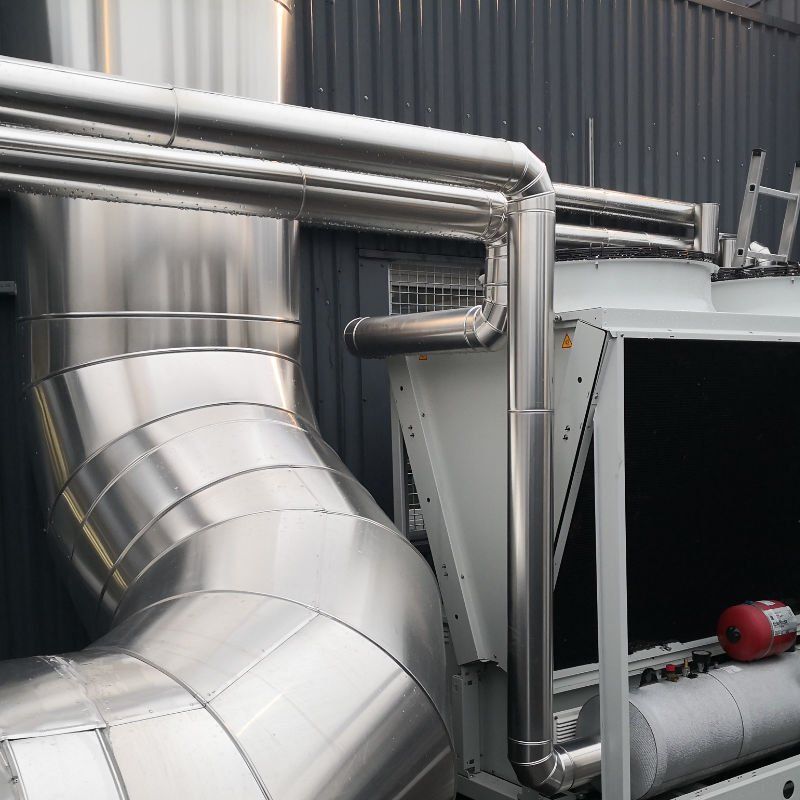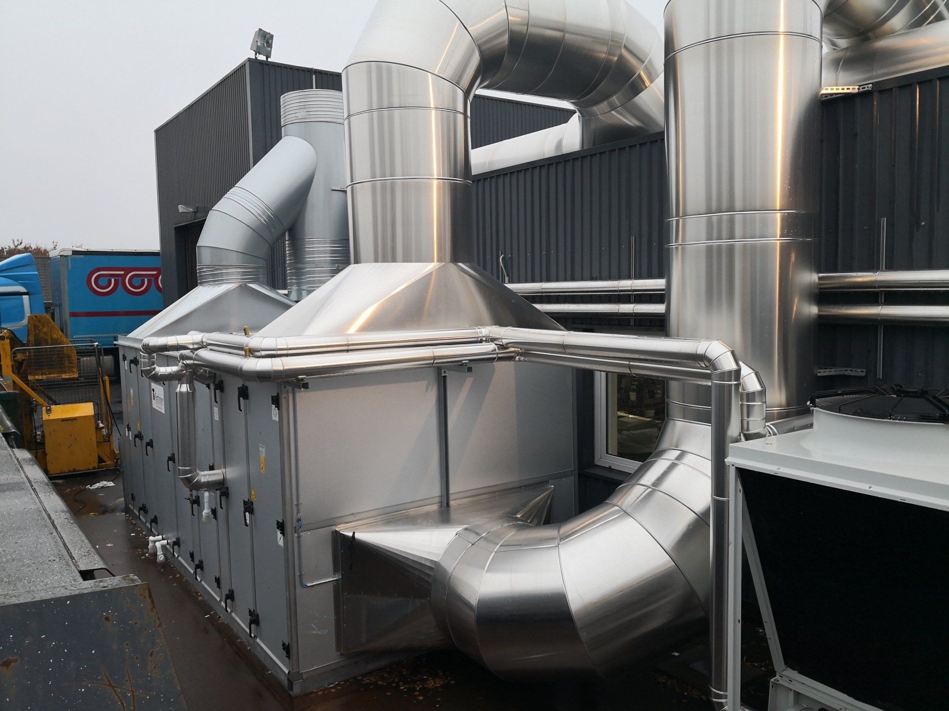 Ventilationsanläggningen ger ventilation av produktionshallen och utsugning av processluft från tryckerimaskinerna. Ett 100 kW vattenkylsystem har installerats för att tillföra kylvatten till ventilationsaggregatet, vilket säkerställer en behaglig temperatur i produktionshallen för en optimal arbetsmiljö.