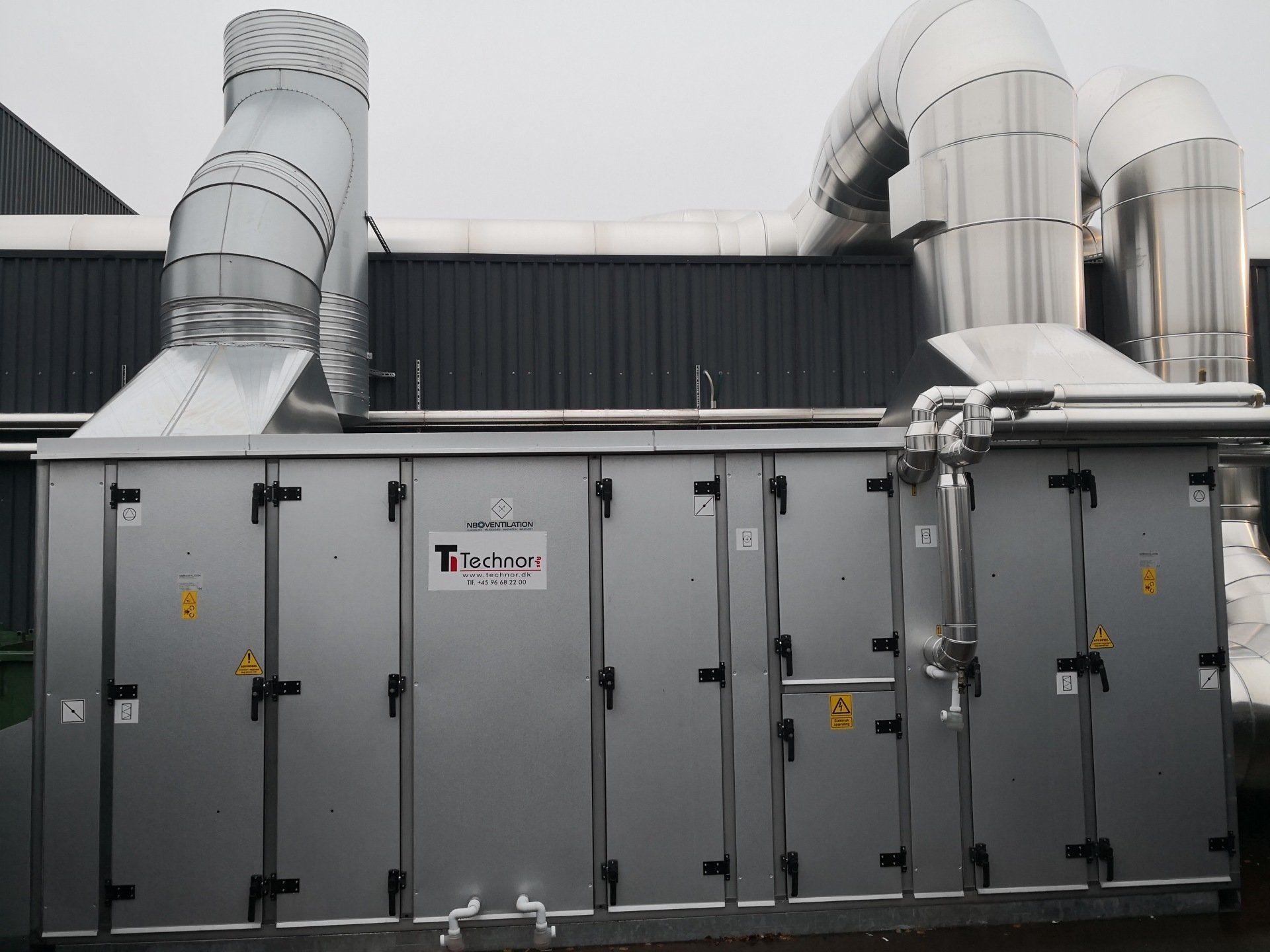 Ventilationen styrs både av trycket från processavgaserna från maskinerna och av temperaturen i produktionshallen. Luftvolymen och därmed energiförbrukningen anpassas alltid till det aktuella behovet av energieffektiv drift.