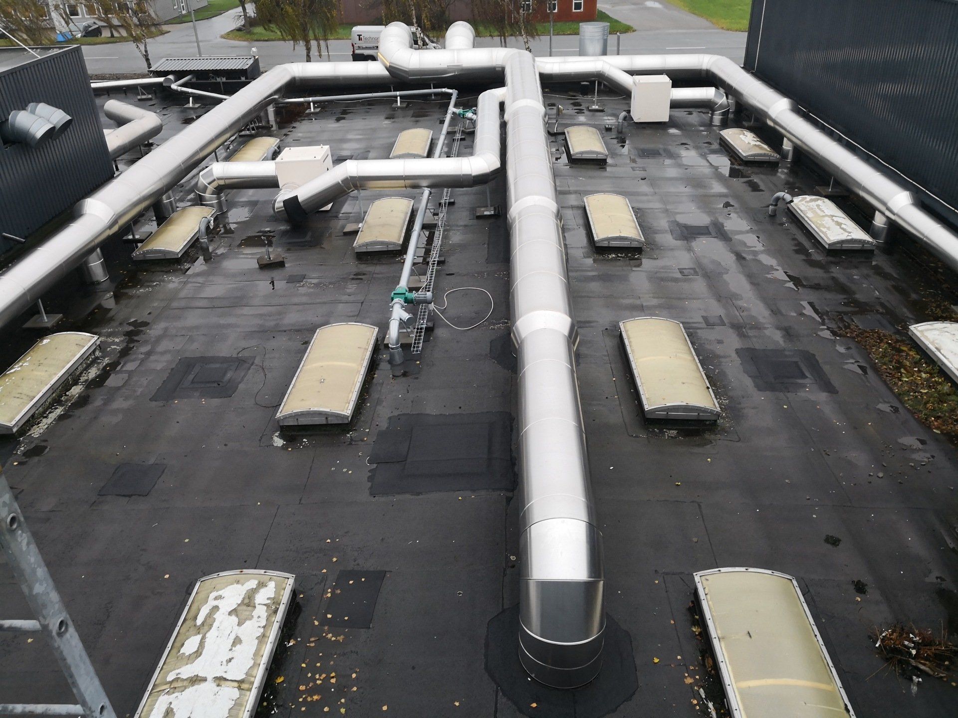 Ventilationsprincipen är förskjutningsventilation med förskjutningsarmaturer som säkerställer ett bra luftflöde i produktionshallen.