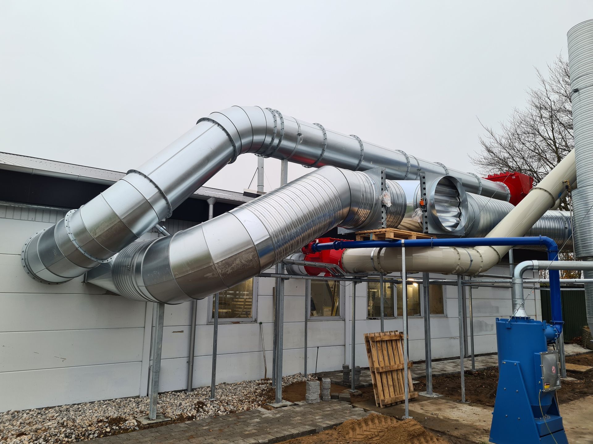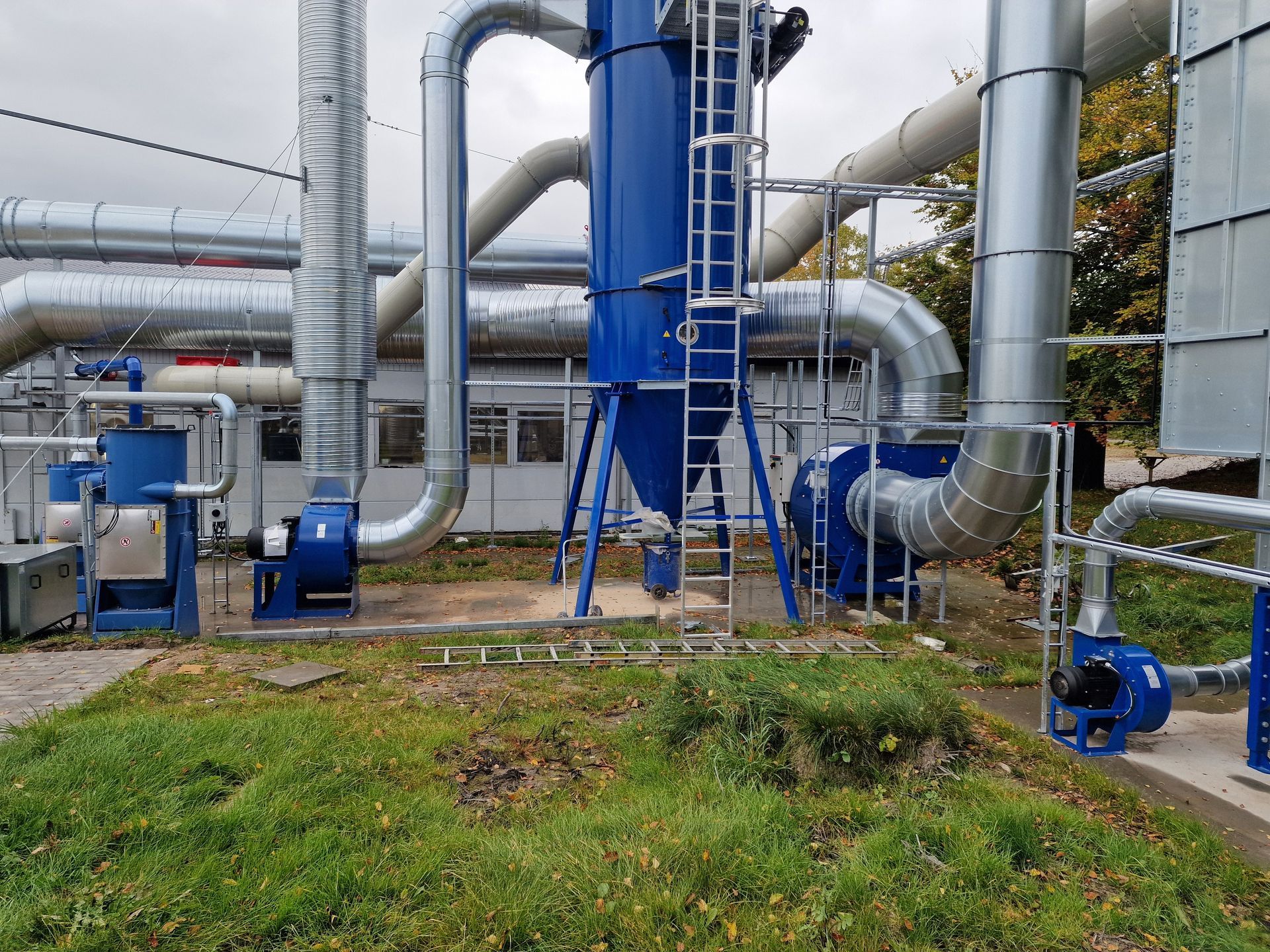 För utsugning från handhållna maskiner har ett högtryckssystem med föravskiljare, filter och högtrycksfläkt på 1.000 m³/h installerats.