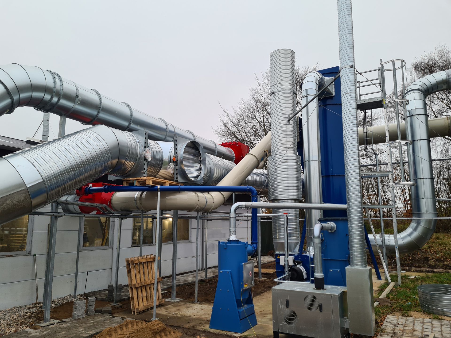 För utsugning av lackdamm från slipmaskiner och arbetsbord har ett filter av typen Blower på 15.000 m³/h installerats.