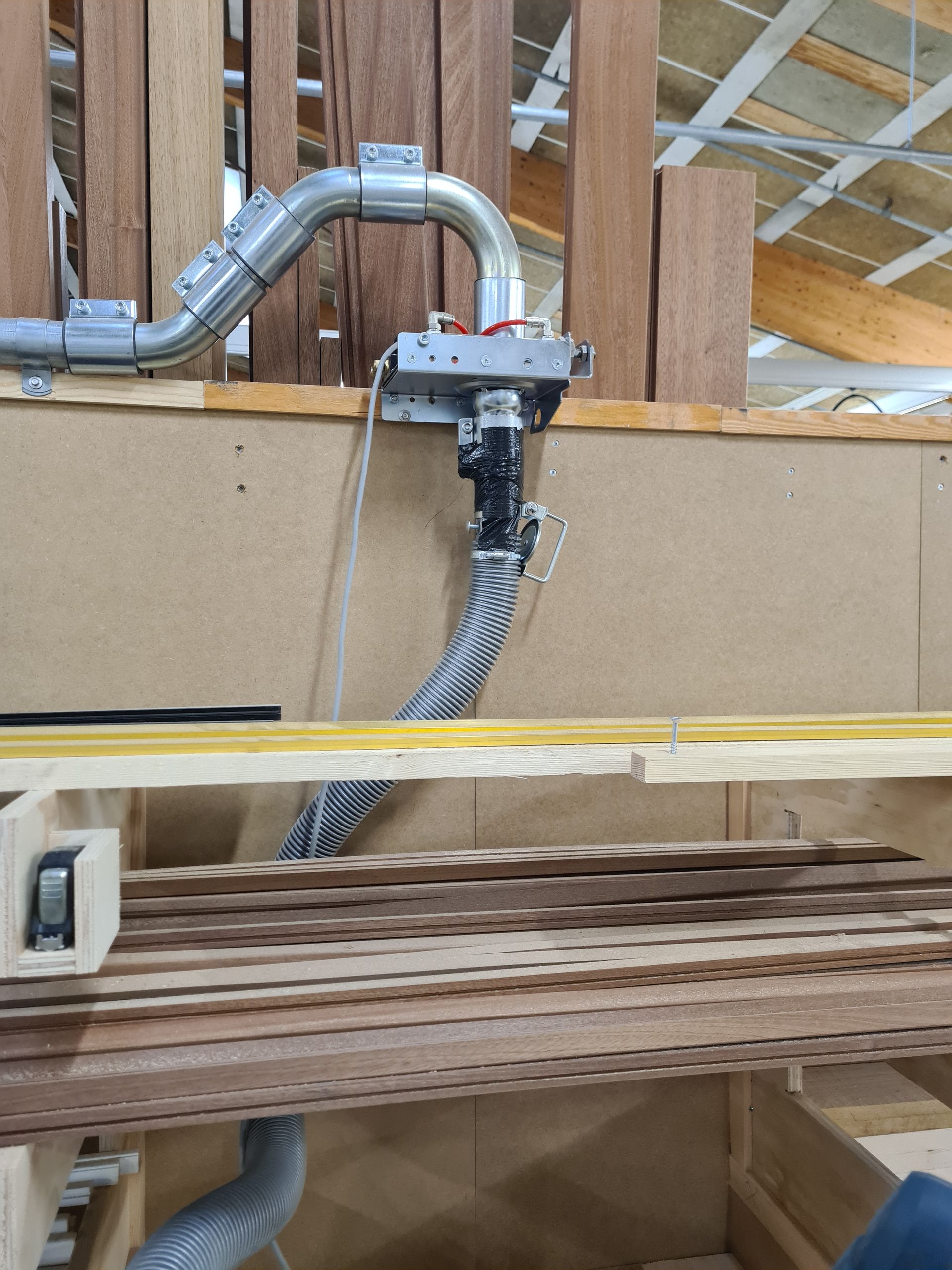 För spånutsug har ett filter av typen Super Jet med en kapacitet på 50.000 m³/h installerats. Det är frekvensstyrt beroende på hur många maskiner som är i drift.