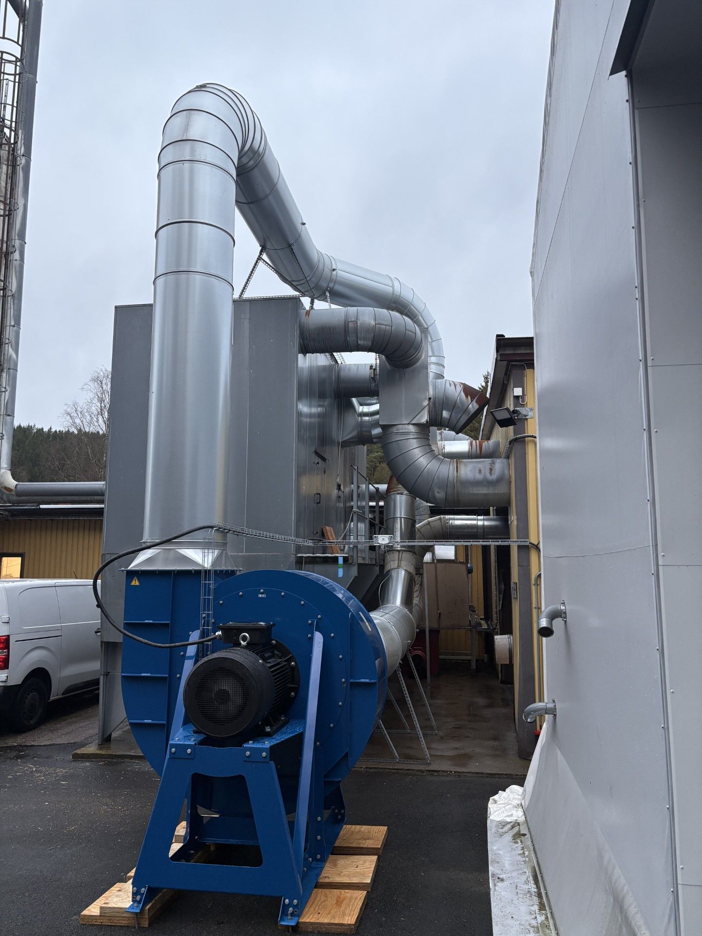 Technor AB har genomfört en mindre men viktig uppgradering hos Hultafors Snickerifabrik AB. Den befintliga utsugningsfläkten var underdimensionerad, och därför installerade vi en JK-70MTDP med 55 kW motor.