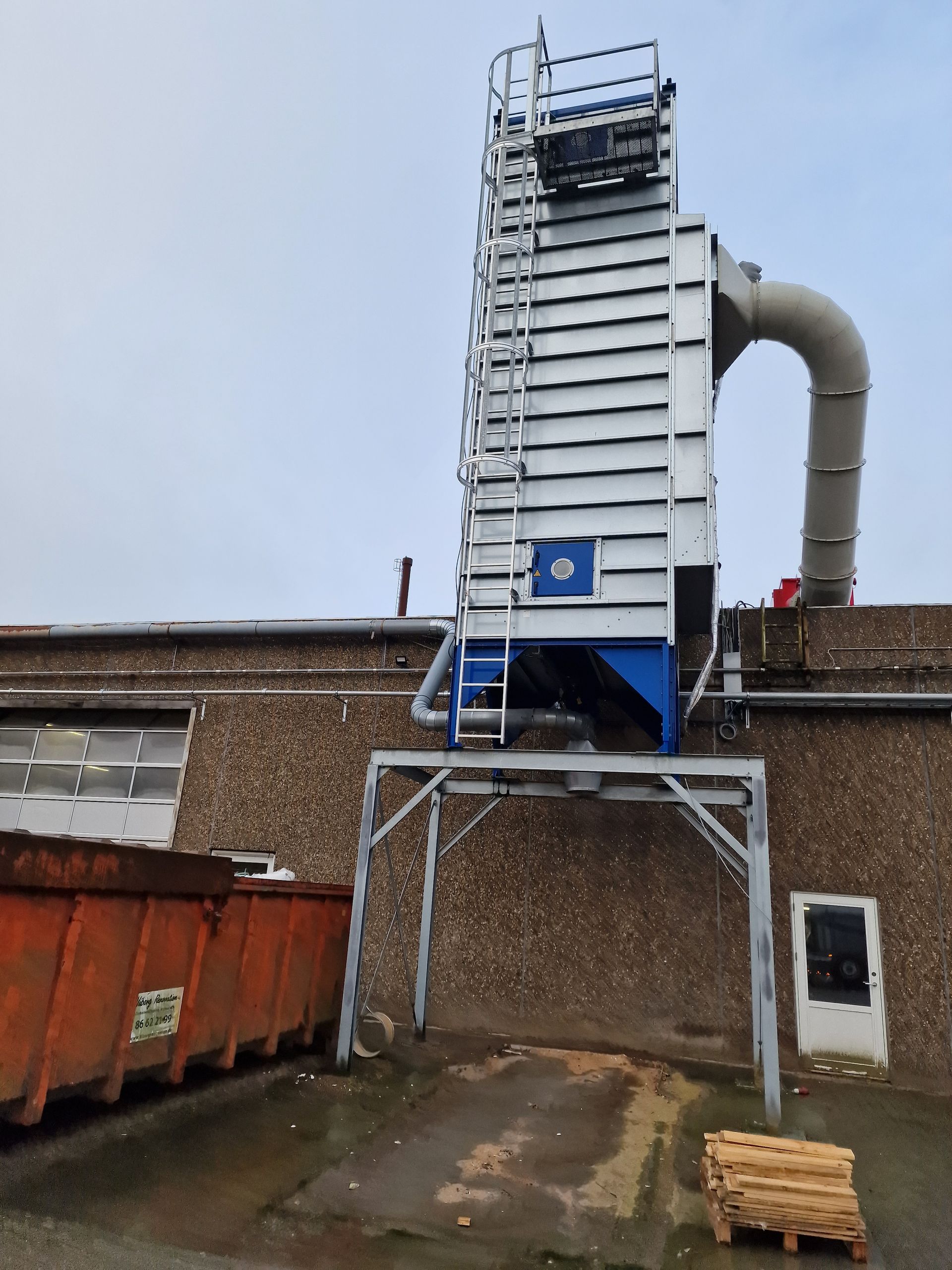 Vi levererade och installerade en helt ny anläggning med ett superjet-undertrycksfilter som har automatisk, differentialstyrd tryckluftsrengöring för optimal drift. Kapaciteten på 50 000 m³/h säkrar att även de mest krävande produktionsmomenten får stabil och pålitlig utsugning.