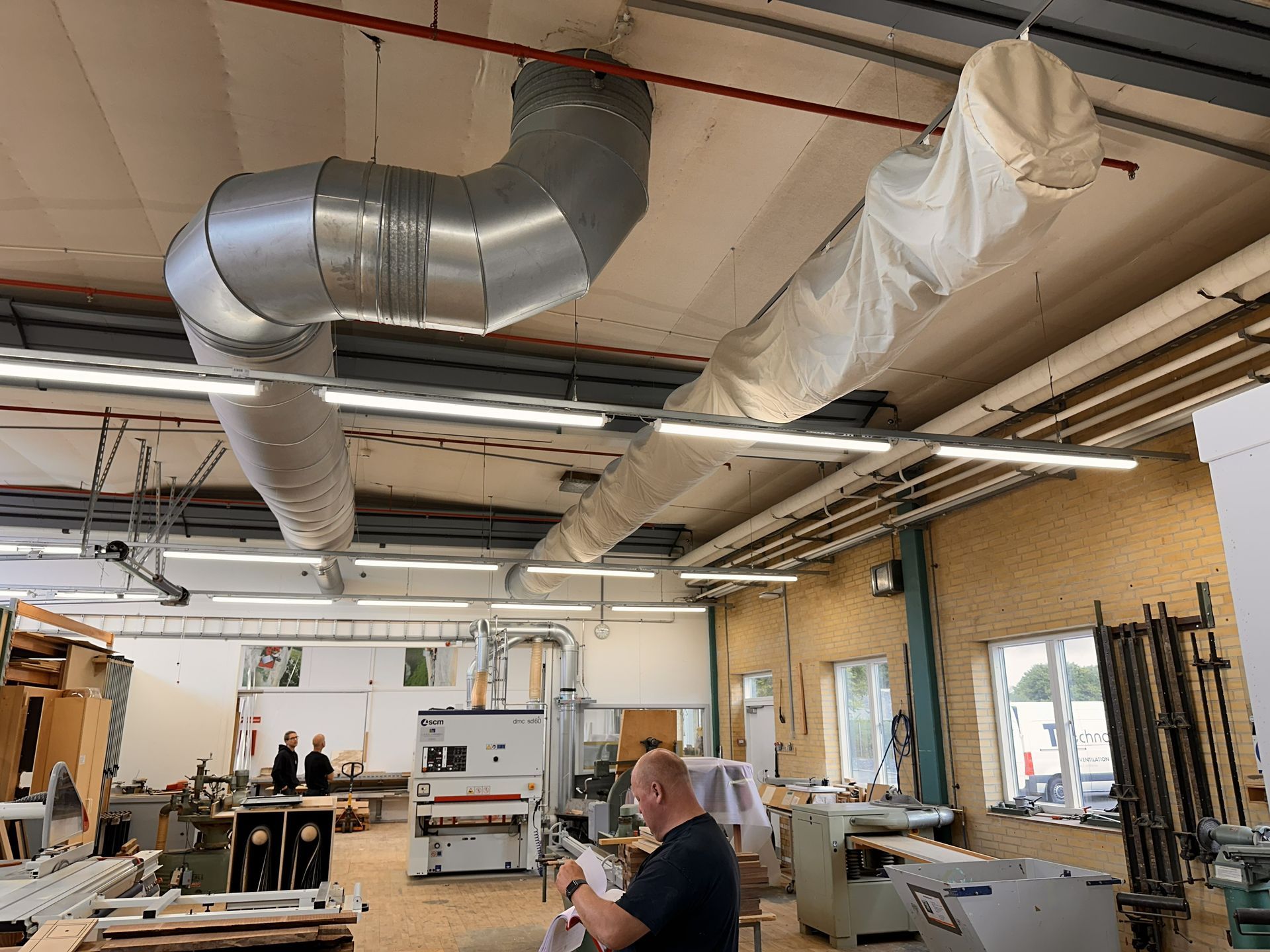 Hos B&O var det befintliga utsugningssystemet mycket gammalt och fungerade inte längre tillfredsställande. Tidigare användes golvsug i verkstaden, men när regelverket ändrades och sopning inte längre var tillåten fick det gamla anläggningen ta över hela belastningen.