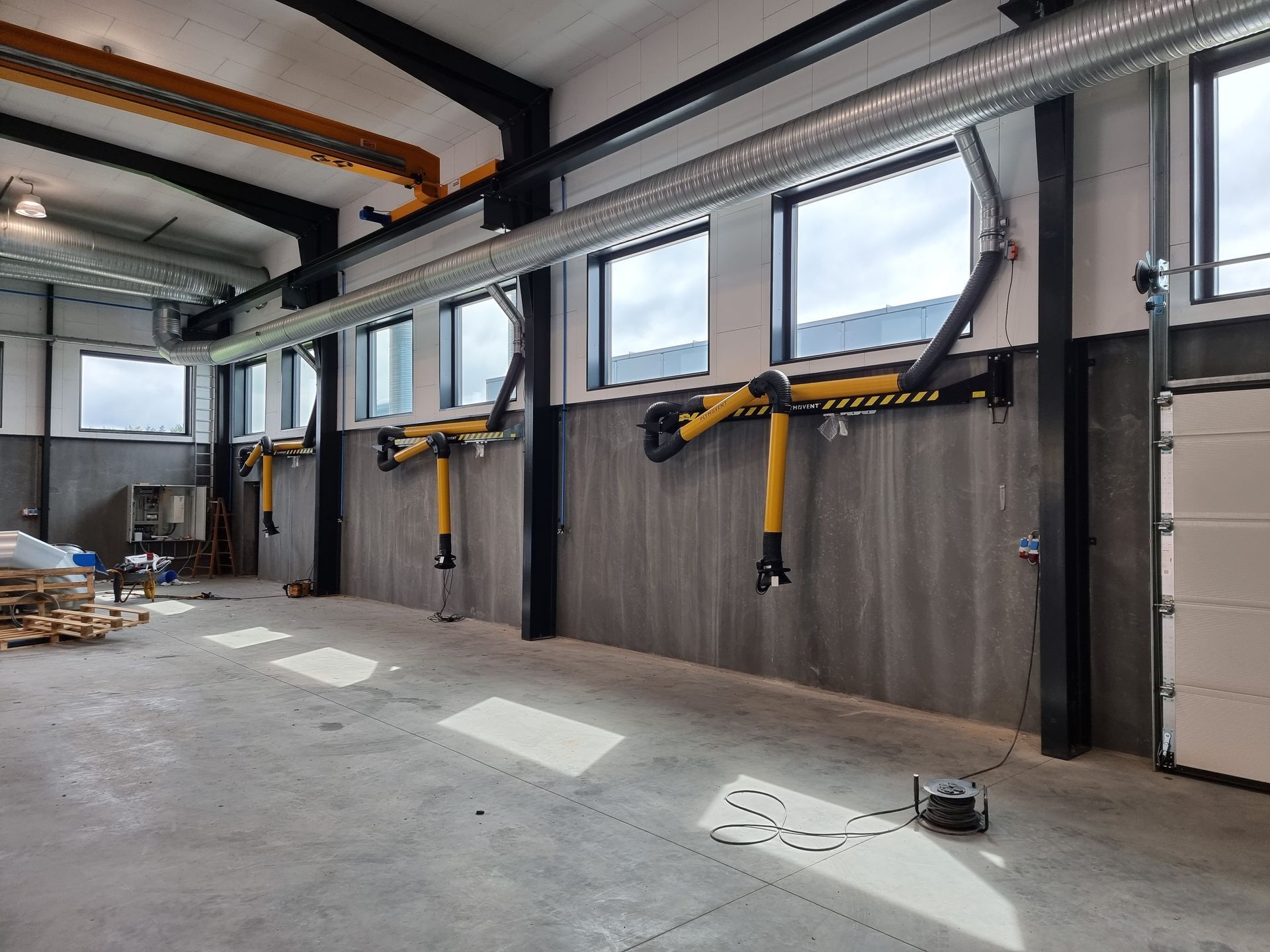 Vid projekteringen av en ny svetshall modellerades kundens nya byggnad i 3D i vår designstudio och båda anläggningsinstallationerna användes för att skapa bästa möjliga visuella förståelse för hallens layout. Det innebar att man kunde visa exakt hur många arbetsstationer det fanns plats för, var de olika stationerna skulle placeras för maximalt utnyttjande av utrymmet.