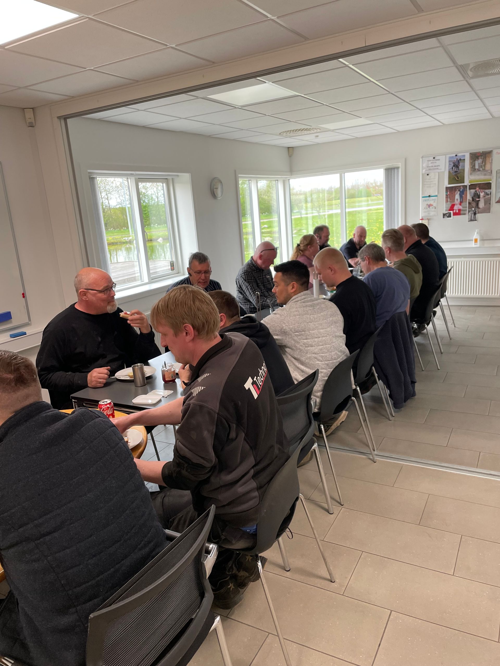 Her hos Technor går det dog rimelig hurtigt når alle mand (og kvinder) hjælper til. Og så glider det hele lidt lettere, når der bliver givet rundstykker først 😁